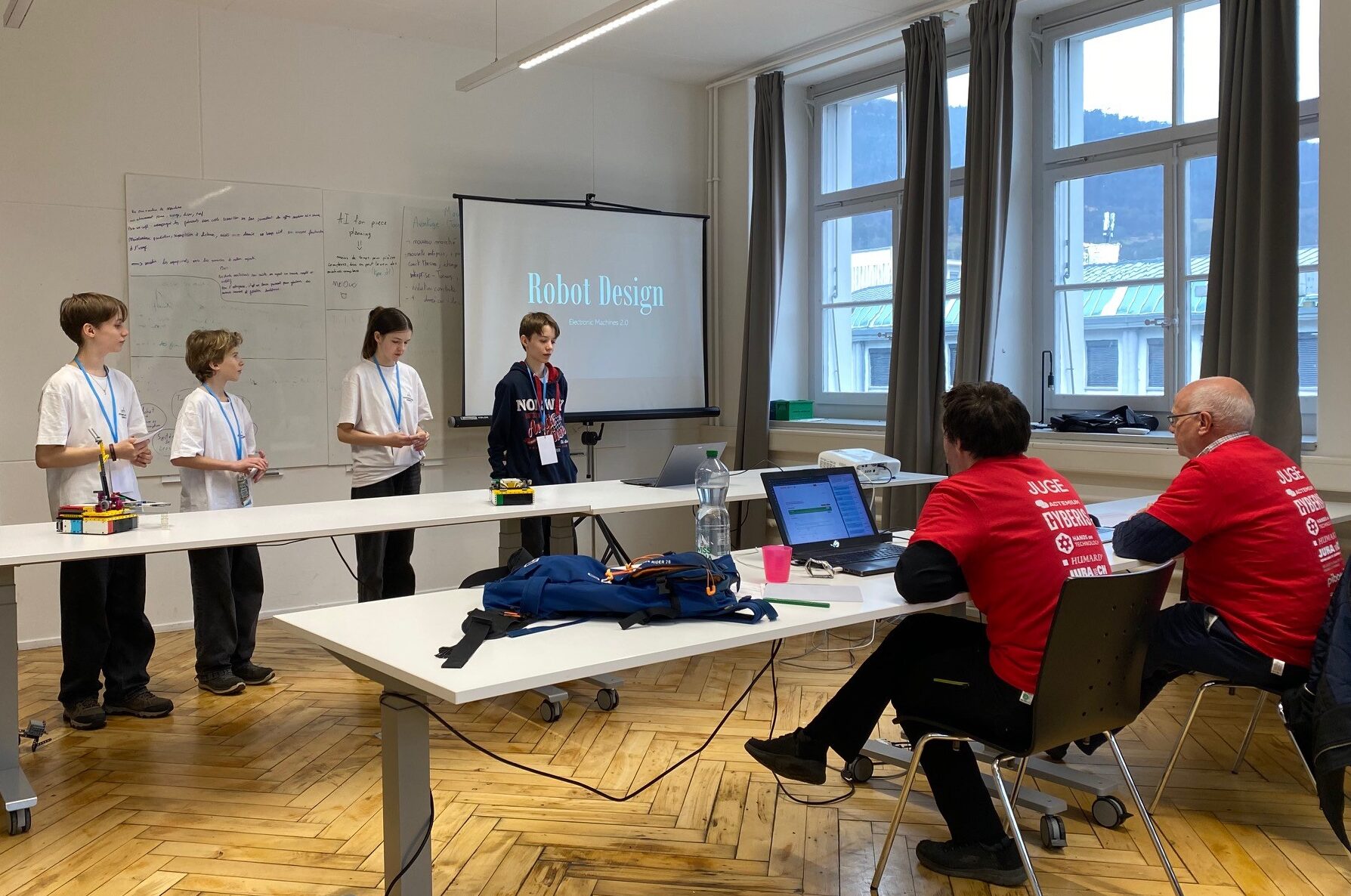 Am Wochenende vor den Sportferien nahm das Robotik-Team Electronic Machines Schiers 2.0 am Schweizer Finale der First Lego League in Moutier teil. Flurina, Elias, Maurin und Reto vertraten das Team engagiert, zwei weitere Mitglieder konnten ferienbedingt nicht dabei sein.