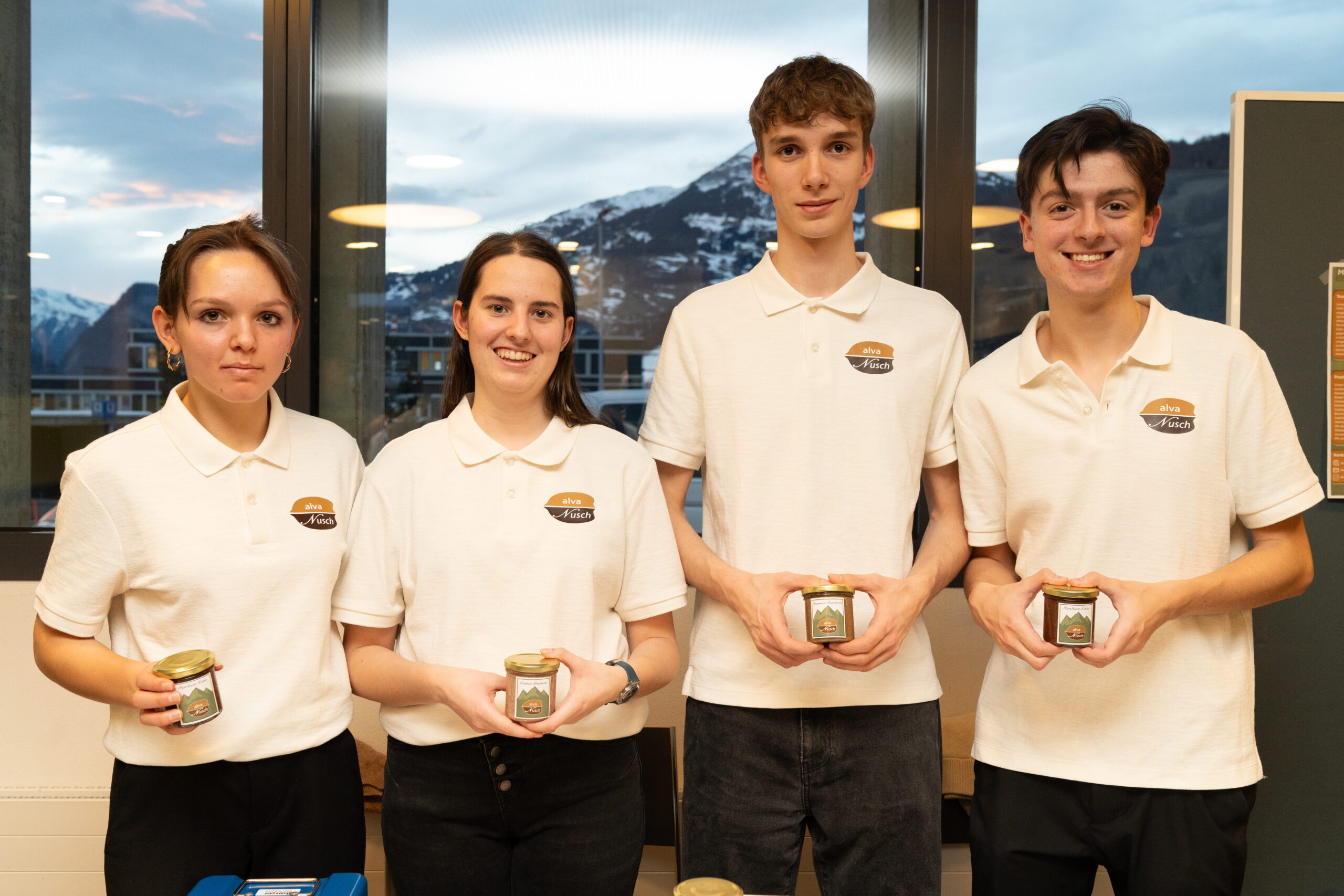 Ausserdem stellten die drei YES-Miniunternehmen aus der Abteilung Wirtschaft & Recht ihre Produkte vor: SKAYA zeigte Taschen aus recycelten Gleitschirmen, alva Nusch bot verschiedene Nussmus-Sorten an und Pancify präsentierte Pancake-Fertigmischungen.