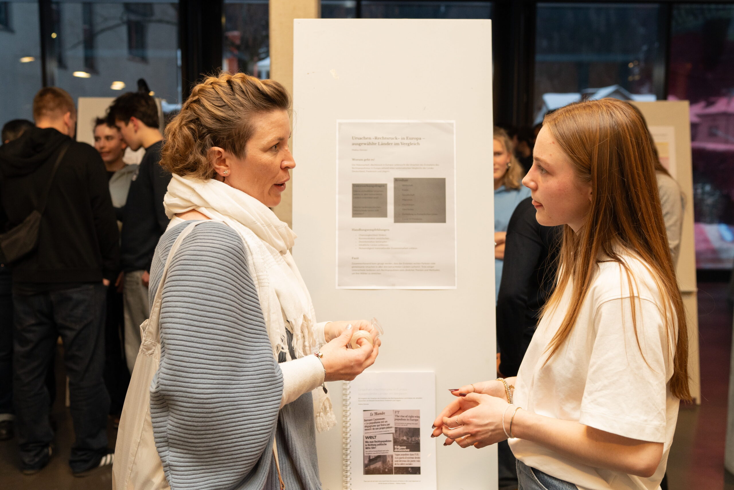 Für das leibliche Wohl sorgte das Mensa- und Küchenteam, während die Besucherinnen und Besucher mit den Autorinnen und Autoren über ihre Arbeiten sprachen.